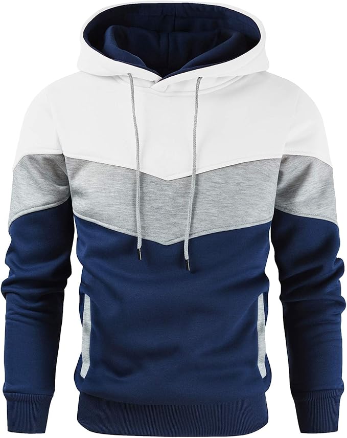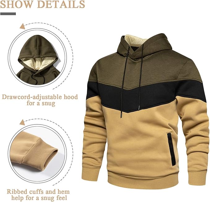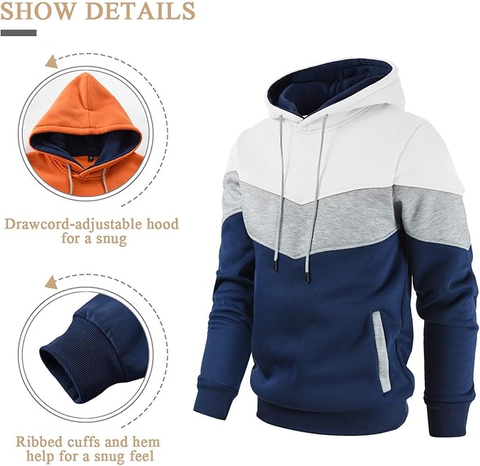 Gesean Men’s Novelty Color Block Pullover Fleece Hoodie Long Sleeve Casual Sweatshirt with Pocket