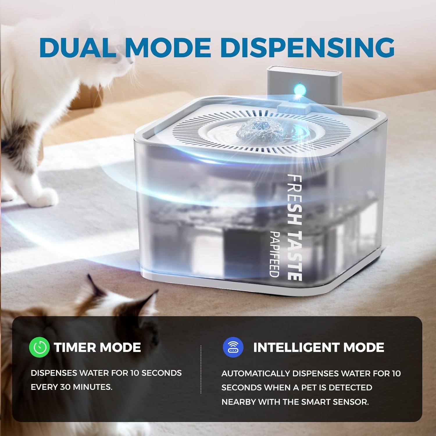 Silent Leak Proof Cat Drinking Fountain 3 Liter Large Capacity, Semi-Transparent Visible Water Tank with Motion Sensor Function, Detachable Cat Fountain.