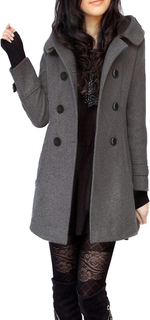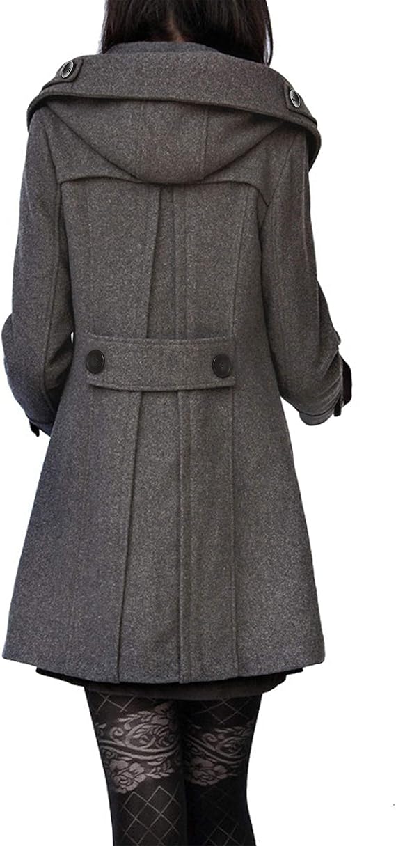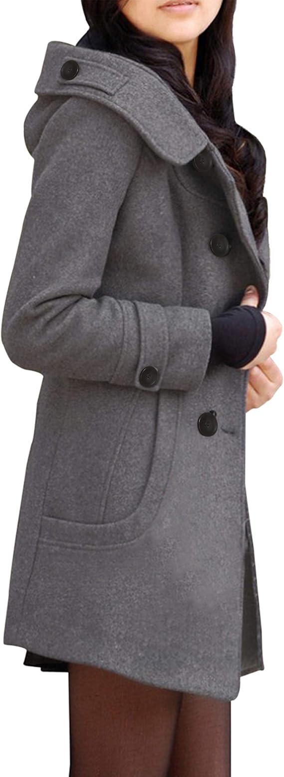 Tanming Women’s Warm Double Breasted Wool Pea Coat Trench Coat Jacket with Hood